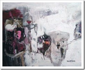 畫家楊淑芳有別於2004年在德明藝廊展出的作品,這次以抽象形式表現。單純是楊淑芳現階段的繪畫形式,線條與符號、色彩與層次是表達情感的語彙,均在試探與摸索之間呈現。從其抽象作品之中,我們似乎能感受到東方精神,從多變的線條與不規則的造型之中表達出感性又即興的美感。